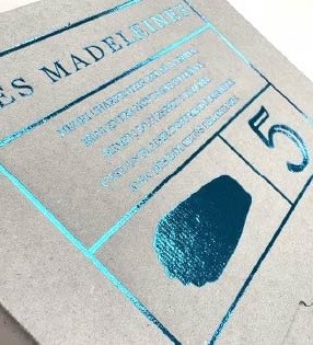 【デザインのこだわり】デザインのベースは、コラボレーション第一弾のフィナンシェ5個入と共通のデザインを採用し、説明文やマドレーヌのアイコンを入れ替えることで、ブランドとしての統一感を大切にしました。また、マドレーヌの「貝殻型」から“海”をイメージし、箔押しにはスカイブルーを採用。フィナンシェは金箔、マドレーヌはスカイブルー箔と、単体でも、並べても美しく映えるデザインを目指しています。