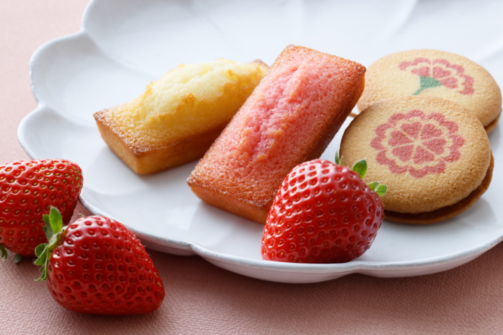 【内容】フィナンシェ3個、いちごフィナンシェ3個、ラング・ド・シャ<プレーン・母の日プリント付き➀>5個、ラング・ド・シャ<プレーン・母の日プリント付き➁>5個