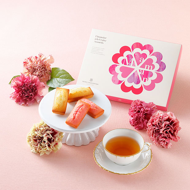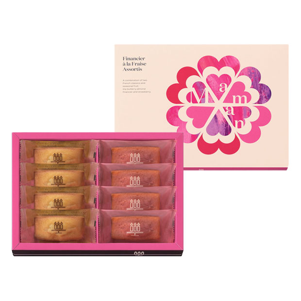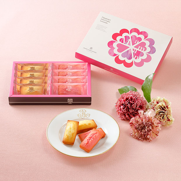薄皮のため滅多に市場に出回らないこの幻のいちごを果汁にし、いちご本来のやさしい香りと風味をフィナンシェに閉じ込めました。